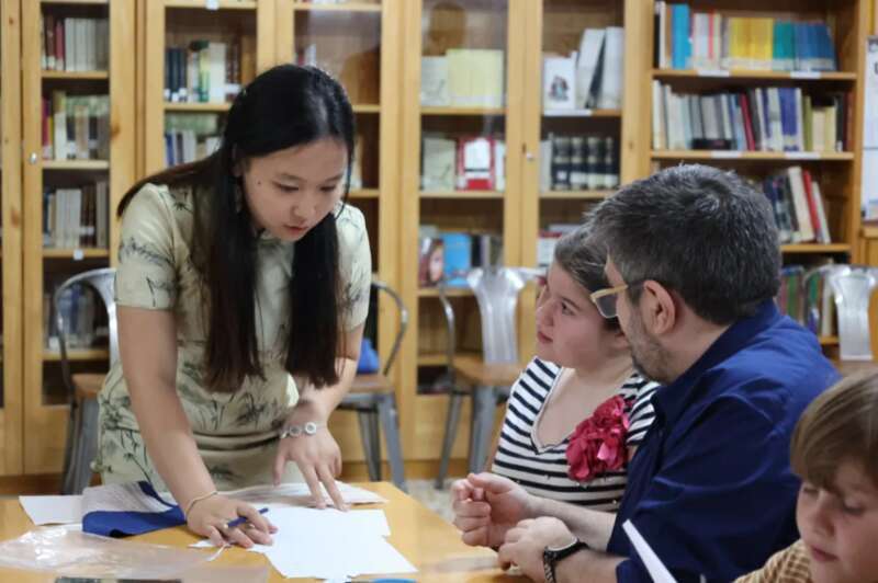 今年4月,非遗记译团队在西班牙马德里中国文化中心举办了一场名为“中国传统工艺美术展”的非物质文化遗产展览,学校张礼骏老师和西方语系高子佳、宋博研两位同学为现场观众逐一解释每件非遗作品的制作工艺和特点。除了大家熟知的紫砂壶、油纸伞等中国传统工艺产品,他们还带来了竹子烙画、黎族织锦、东巴字画、水族马尾绣、内画鼻烟壶等各具特色的非遗作品,让西班牙群众深度感受中国非遗。